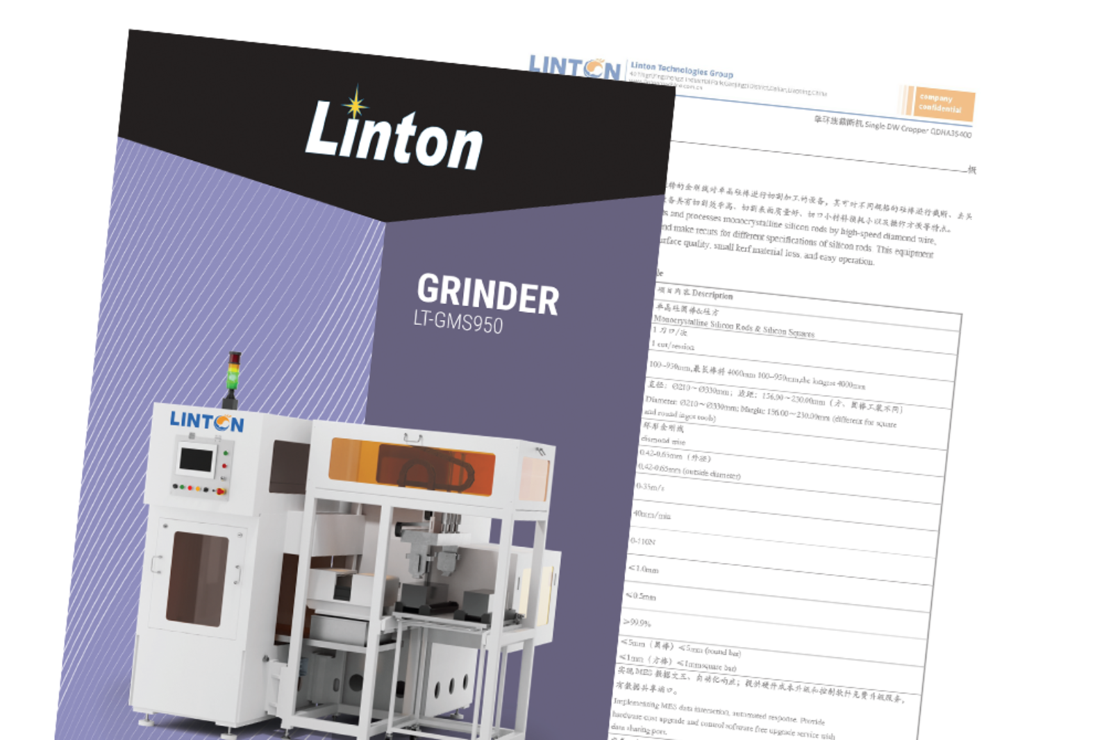 Grinder (LT-GMS950) is an integrated machine for polishing monocrystalline silicon square rods of different sizes in both arc and surface after square cutting, with the functions of rough grinding, fine grinding, R-arc and chamfering processing control. It can be used both as a stand-alone machine and as a grinding unit in the factory automation line.